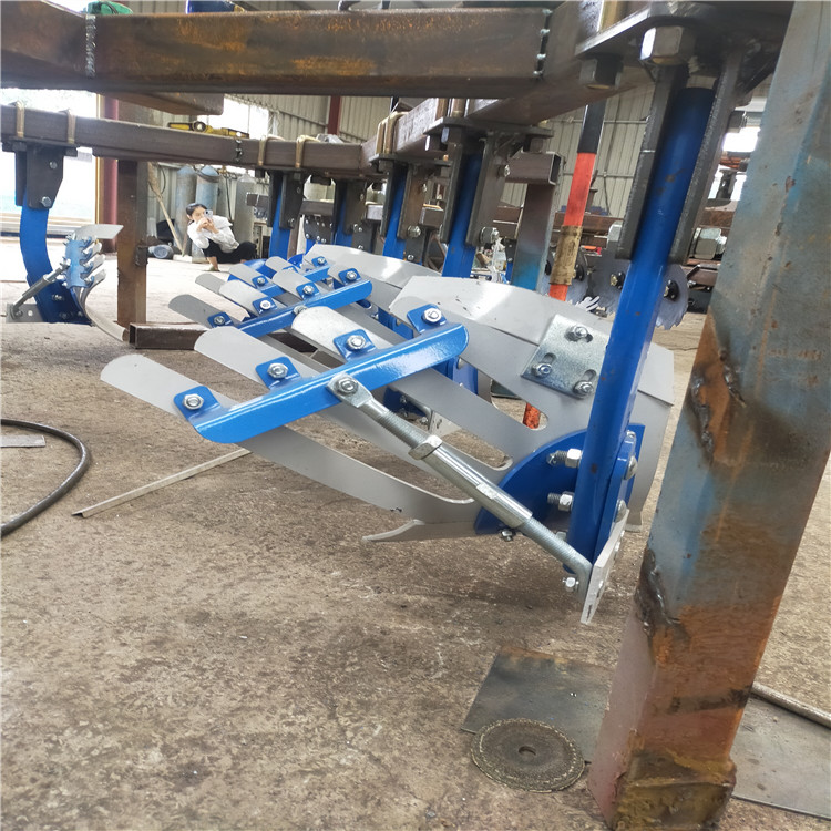 山東曹縣魯富機械升級款無墑溝大犁。本實用新型涉及一種犁地合墑一體機,包括犁架,所述犁架連接有犁鏵和驅動機構,所述犁架設置有連接臂,所述連接臂的一端與犁架相連,所述連接臂的另一端設置有合墑器,通過連接臂將犁架連接合墑器,由于五鏵犁耕作較深,翻轉徹底,并通過合墑器強力合墑,土地深松到位,沒有墑溝,使耕作的土地平整如初,更有利于幼苗根系向土壤深處延伸,冬季死苗率大大減輕,而且生長時間會更長一些,增加幼苗的抵抗力,種植的莊稼根深苗旺,達到增產增收的目的。
